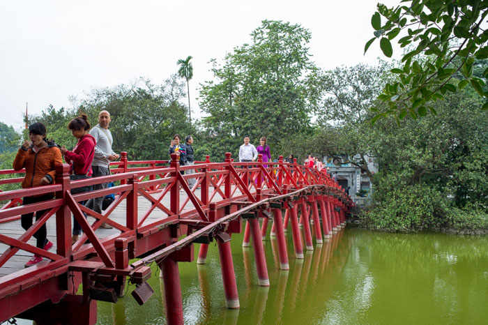 Hoan Kiem Lake meaning “Lake of the Returned Sword” or “Lake of the Restored Sword”, is a lake in the historical center of Hanoi, the capital city of Vietnam. The lake is one of the major scenic spots in the city and serves as a focal point for its public life.Hoan Kiem lake (300metres away from the hotel) is the liquid heart of the Old Quarter, a good orienting landmark. Legend has it that in the mid – 15th century, heaven gave Emperor Ly Thai To a magical sword that he used to drive the Chinese out of Vietnam. One day after the war, while out boating, he came upon a giant golden tortoise; the creature grabbed the sword and disappeared into the depths of the lake. Since that time, the lake has been known as Ho Hoan Kiem (Lake of the Restored Sword) because the tortoise returned the sword to its divine owners.