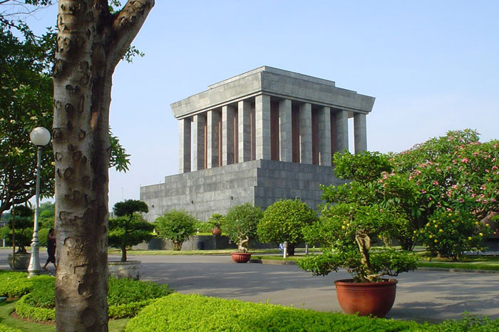 The Ho Chi Minh Mausoleum is a large memorial to the Vietnamese leader in Hanoi, Vietnam. It is located in the center of Ba Ðình Square, which is the place where Ho read the Declaration of Independence on September 2, 1945, establishing the Democratic Republic of Vietnam.