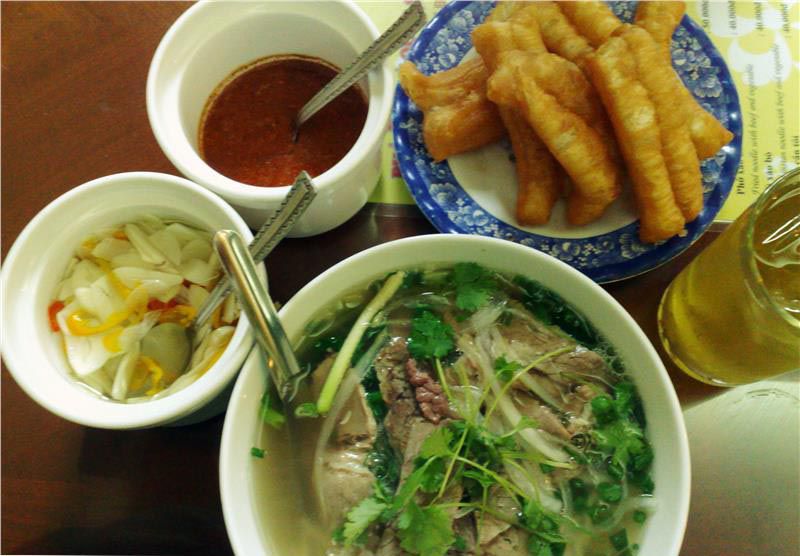 Located at the heart of the Old Quarter, this little shop has been here since the 1960s. Selling only beef noodle, a bowl of Pho here still retains the original taste when it was once introduced. Followers of this place are not the faint hearted. The broth is clear and rich with reduced goodness of bone marrow but is not fatty. The beef is tender and soft with a glowing pink hue.